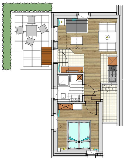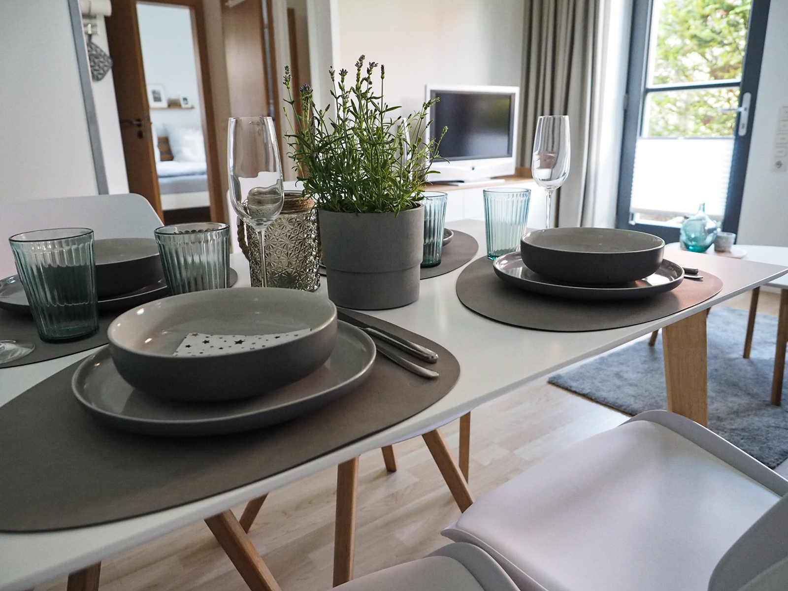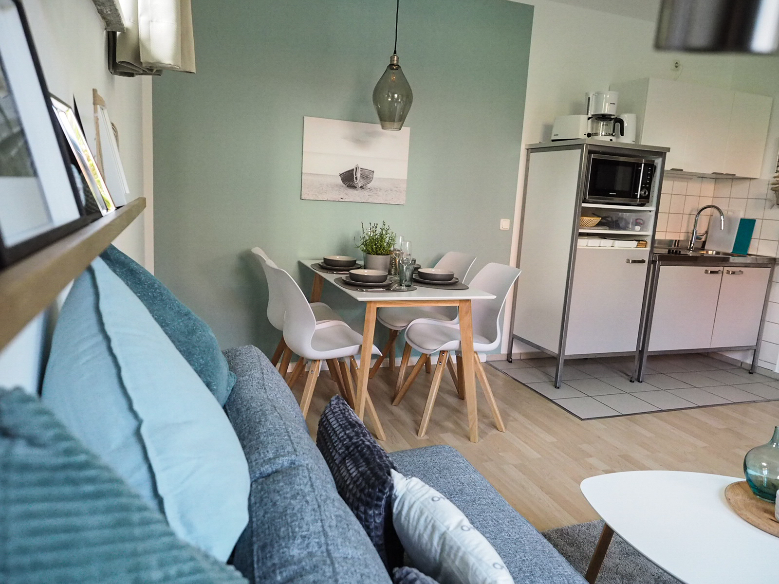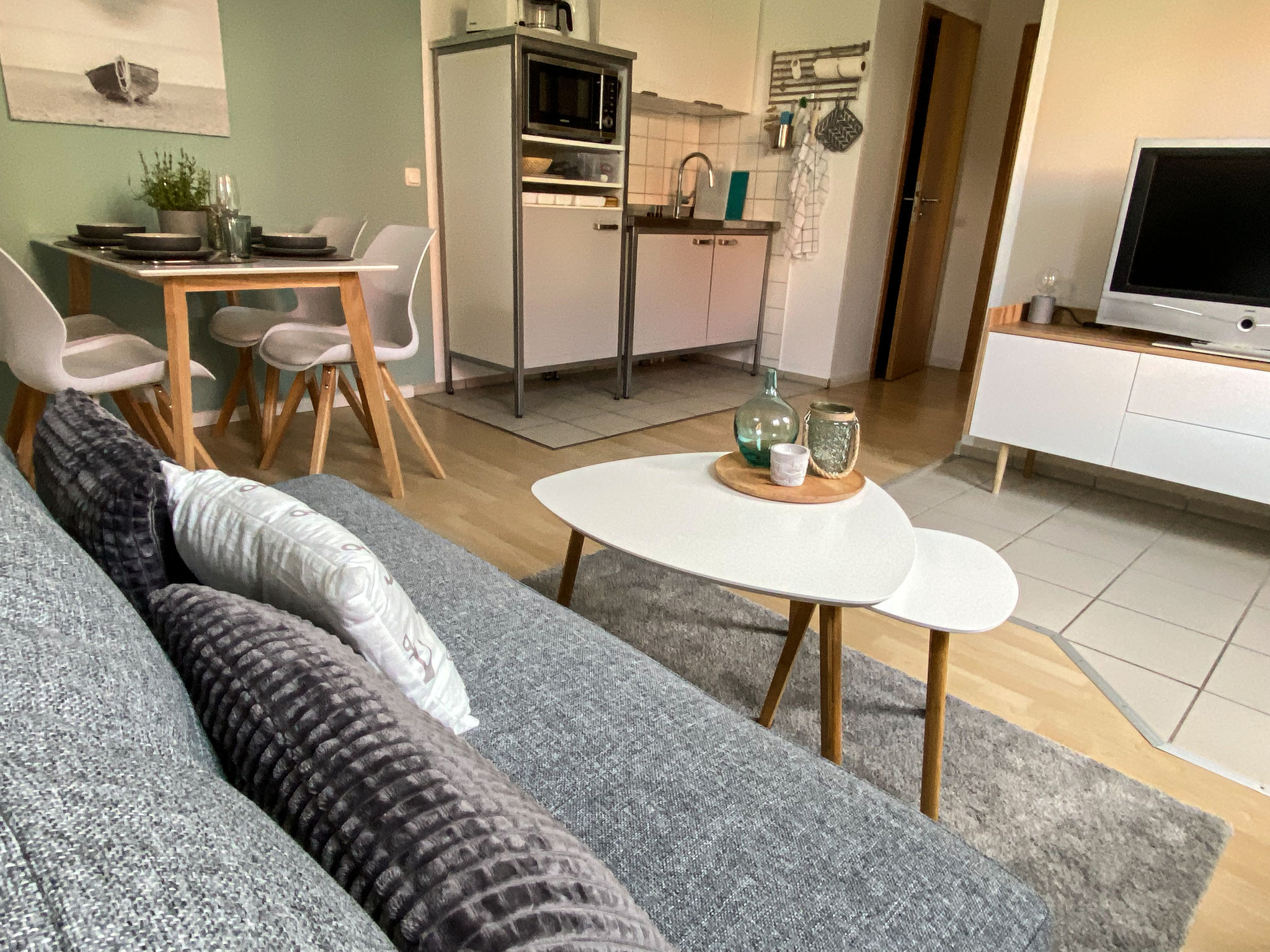 Liebevoll eingerichtet lässt sie keine Wünsche offen. In ruhiger Sackgassenlage mitten im Grünen gelegen für max. 4 Personen kann man herrlich entspannen oder das rege Strandleben genießen. Die Wohnung verfügt über einen großzügigen Eingangsbereich mit eigener, geschützter Terrasse. Innen erwartet Euch ein gemütlicher Wohn-, Koch- und Essbereich sowie ein separates Schlafzimmer mit Doppelbett, ein Duschbad und eine Abstellkammer.